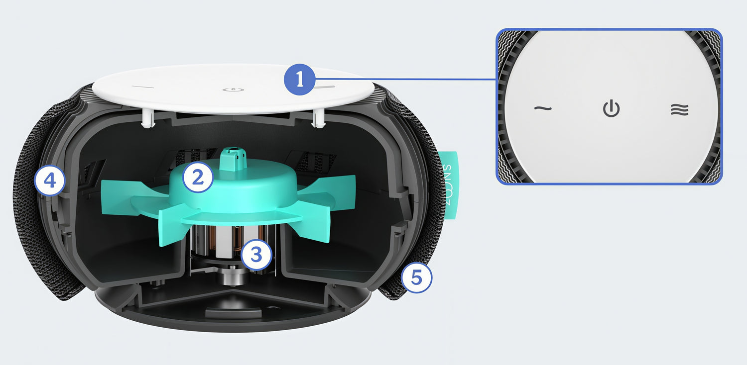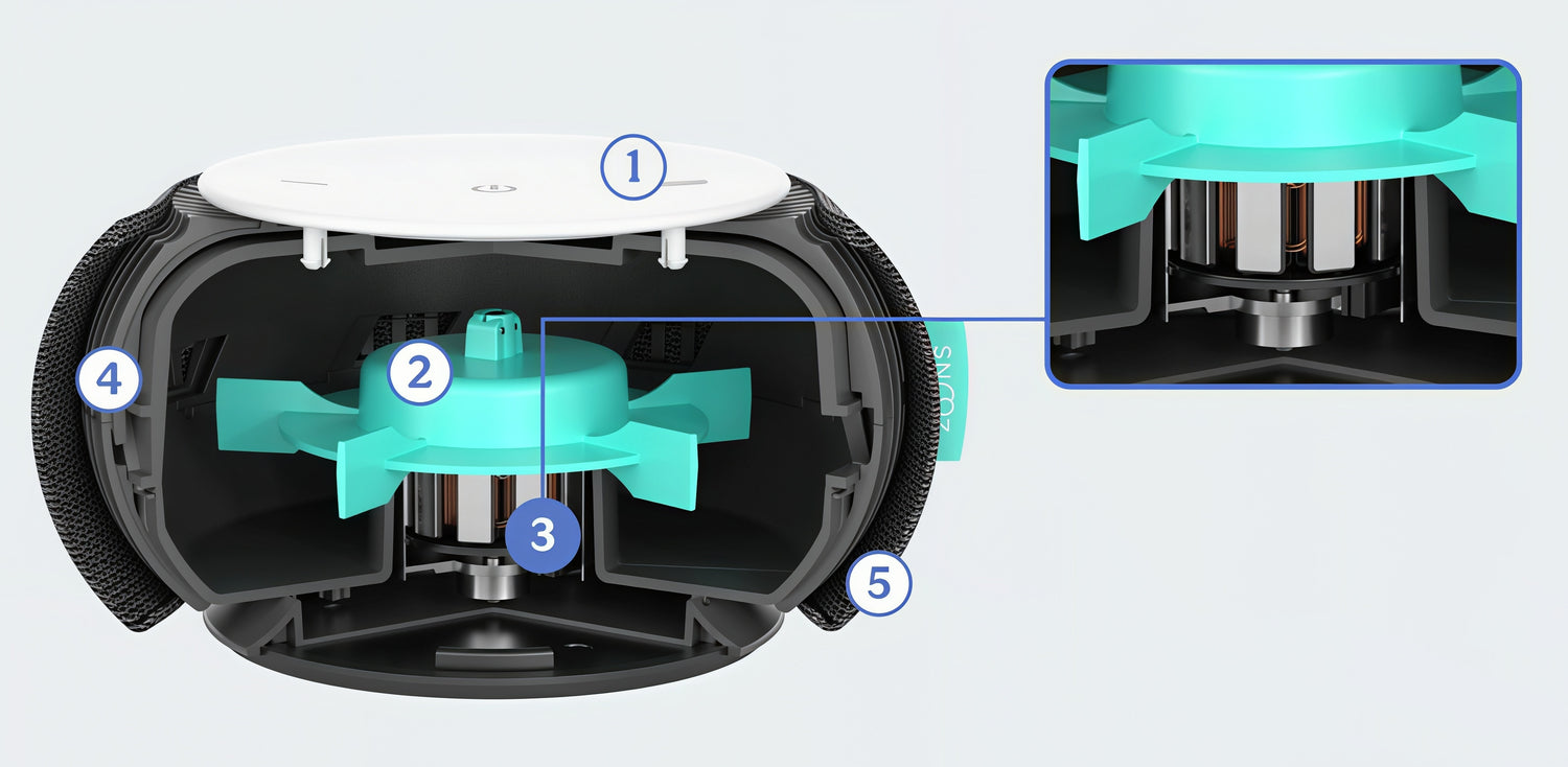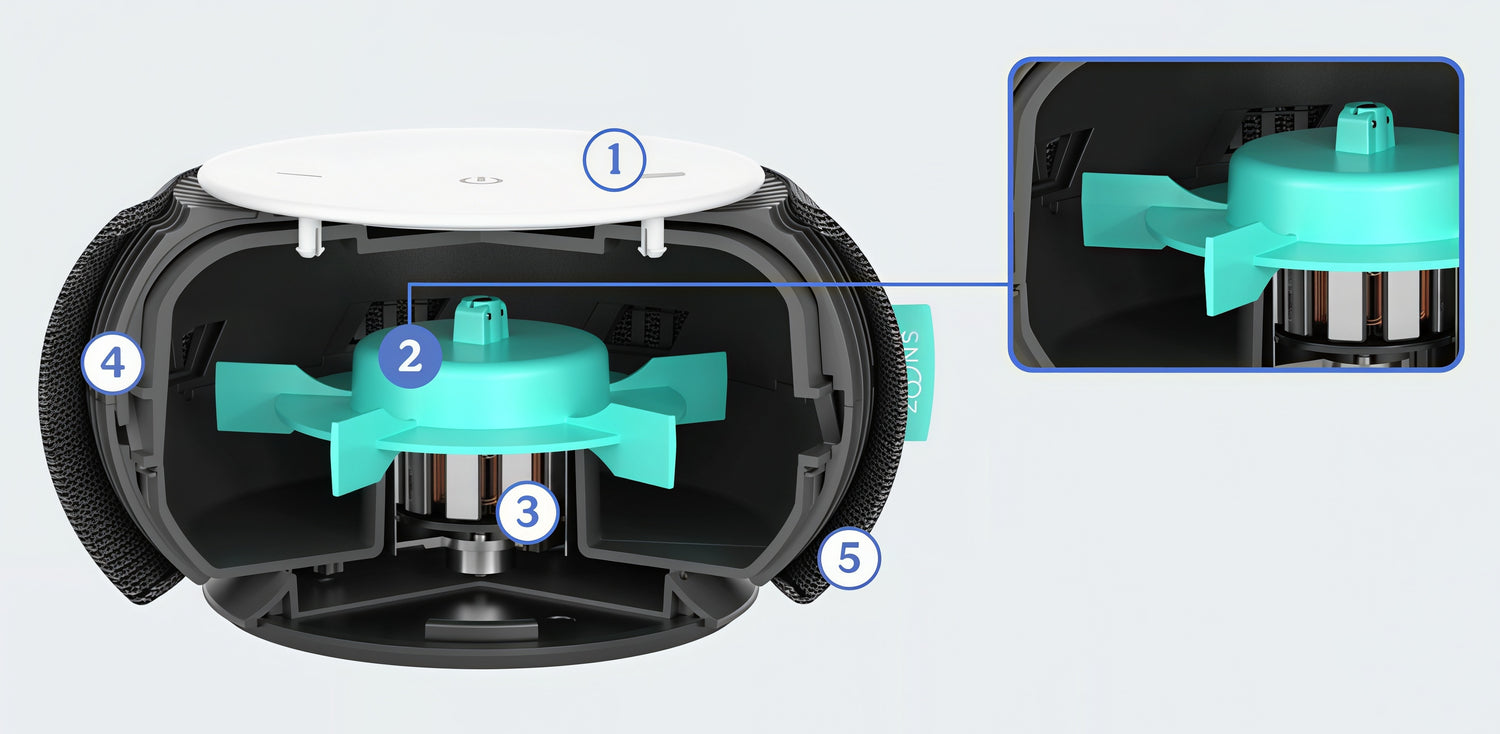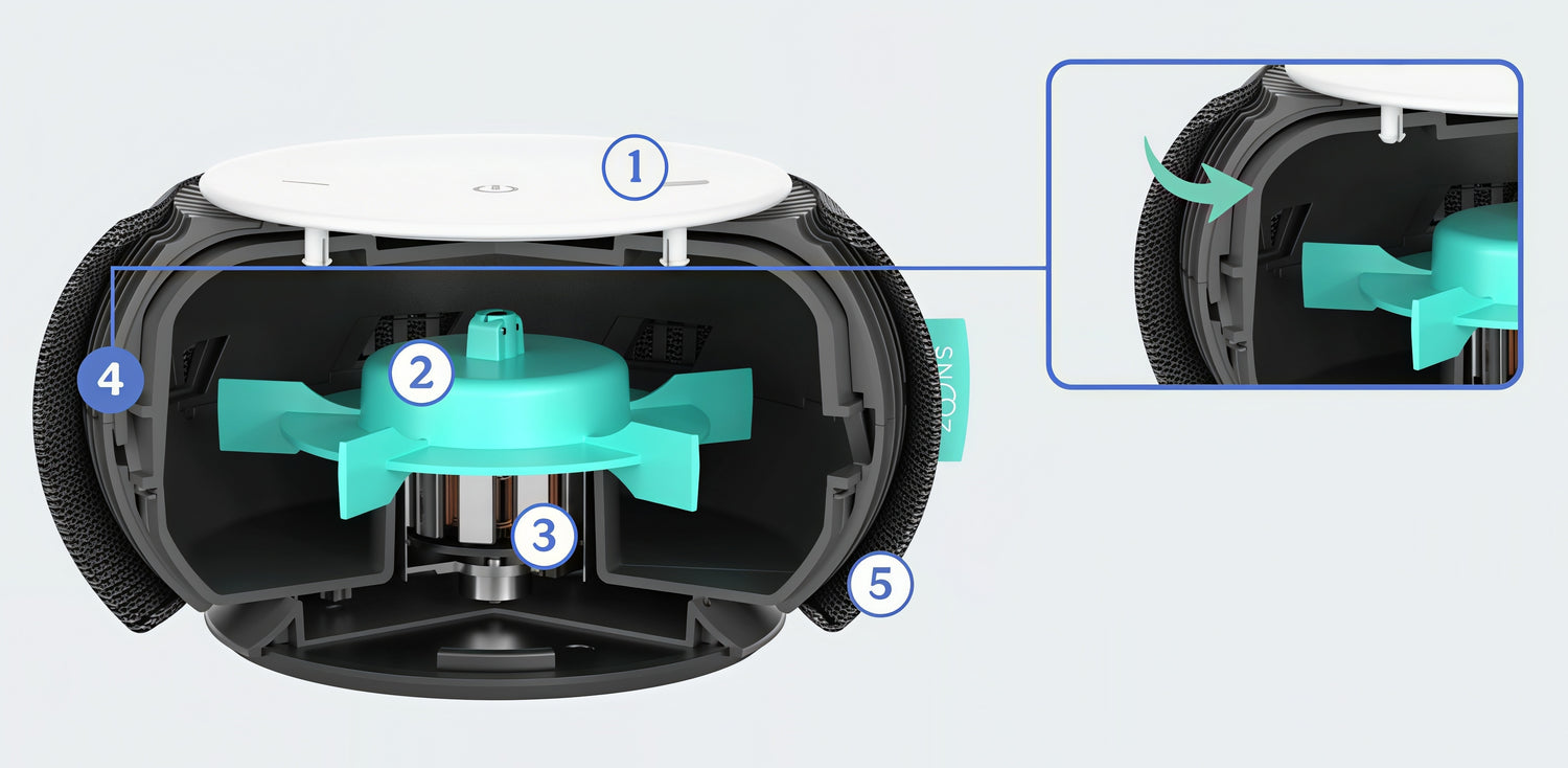 Impeller fancreates natural white noise.