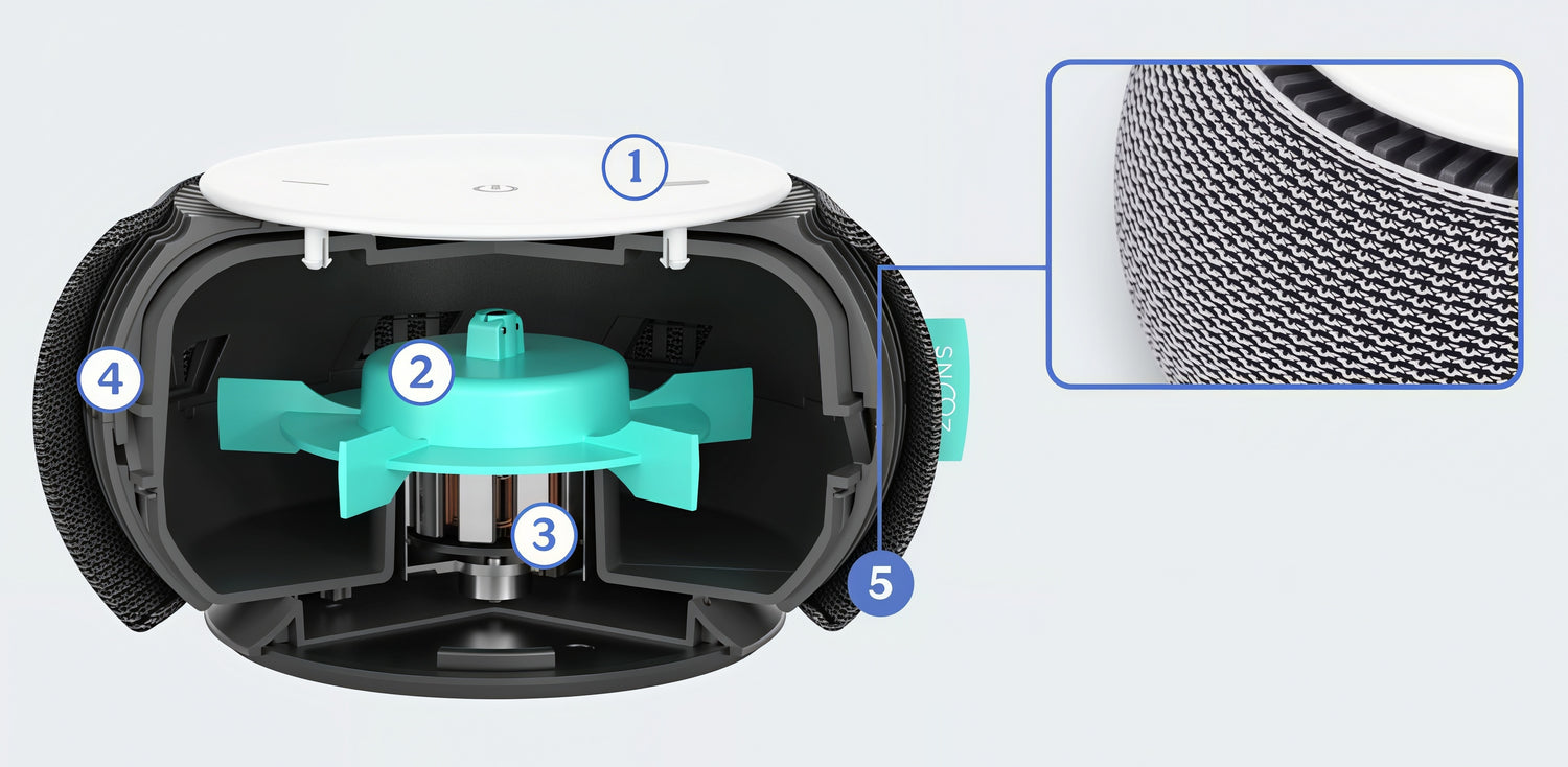 SNOOZ masks disruptive sounds inside and outside the bedroom, creating a peaceful environment to help you sleep deeper for longer.